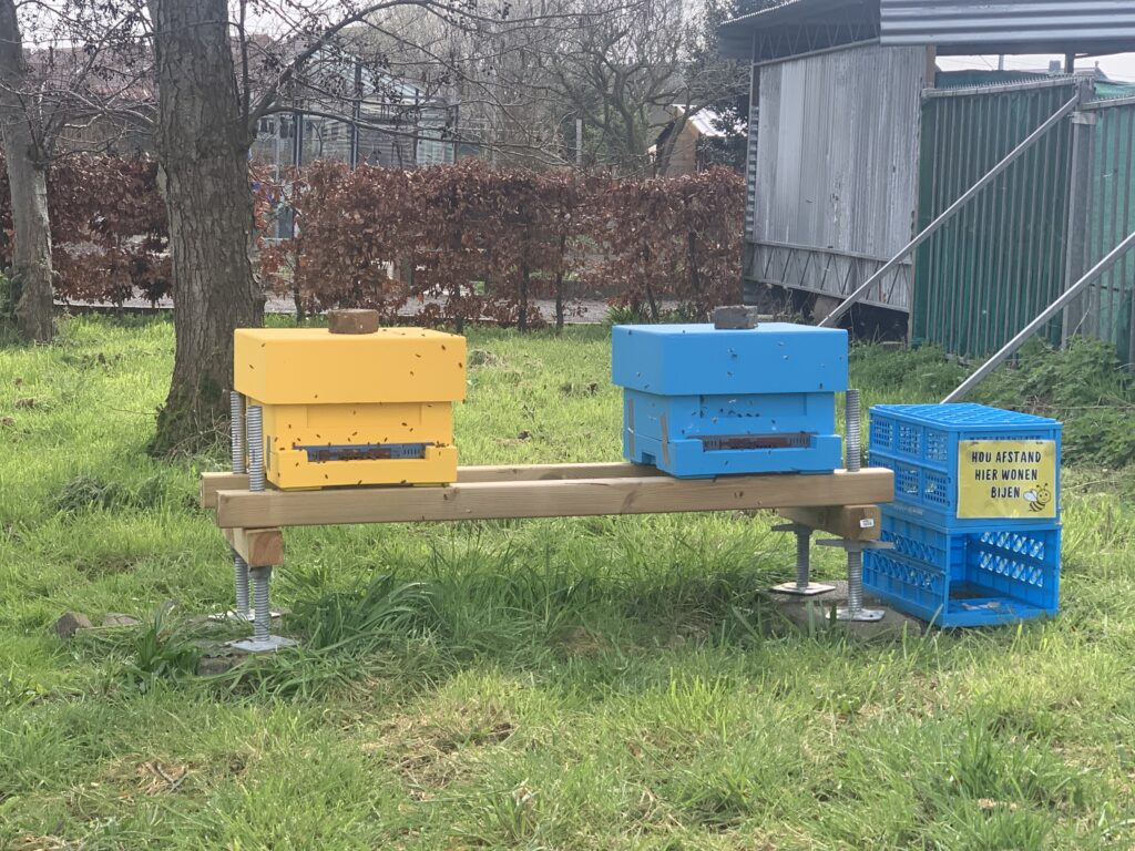 Het is nu oktober en de bijen zijn zich klaar aan het maken voor de winter. In de kast waren geen darren (mannelijke bijen) meer te vinden en de bijen hebben een mooie wintervoorraad opgeslagen. Om de bijen daarbij te helpen is in de maand september 14 kg suikerwater aan het volk aangeboden. Bijen houden geen winterslaap, maar gaan wel in gezamenlijke winterrust door in de bijenkast een tros te vormen om warm te blijven. De werkbijen trillen met hun vleugelspieren om warmte te genereren, waarbij de koningin en de kern van de tros beschermd worden. Om de bijen een handje te helpen bij het warm houden, zijn de bijen overgezet naar een polystyreen bijenkast. Deze isoleert namelijk beter dan een houten bijenkast. Daarbij zijn de bijen hoger van de grond af geplaatst. Zeker wanneer de bodem bevriest kunnen de bijen moeite hebben de tros warm te houden wanneer de kast te dicht bij de grond staat. Nu de bijen klaar zijn voor de winter, is het tijd om afscheid van hen te nemen. Als alles goed gaat zien we ze weer in het vroege voorjaar.